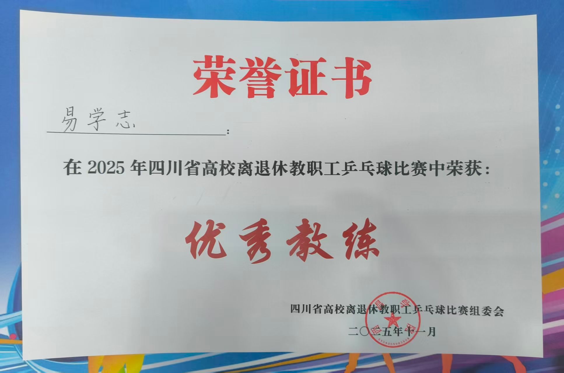 本网讯(文图/苏炳均)11月6—7日,2025年四川省高校离退休职工乒乓球比赛在西昌学院举行。本次活动旨在丰富老同志精神文化生活,推动“全民健身”与“全民健康”深度融合。